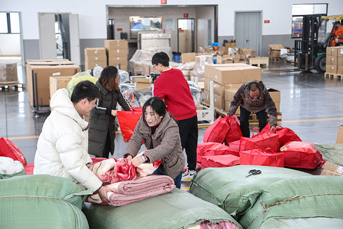 Dingli has always been actively fulfilling its social responsibility. In the same way as the donation of anti-epidemic materials to overseas in early 2020, Dingli purchased more than 2,000 pieces of warm materials, such as jackets and blankets, and organized staff to complete the packing during the weekend, all the materials were sent out this morning.