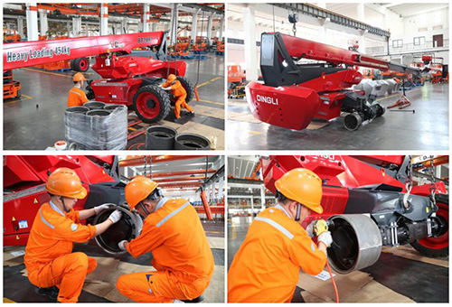 Changing into special tires, Dingli’s heavy loading boom series ready to loading