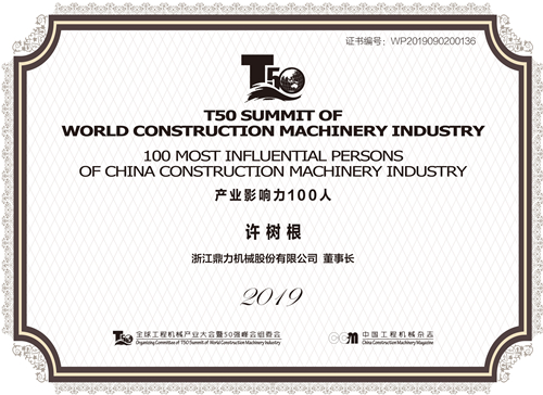 Zhejiang Dingli’s chairman Xu Shugen is listed as "100 Most Influential Persons of China Construction Machinery Industry 2019".It is worth mentioning that Mr. Xu Shugen has been on the list for many years without interruption.