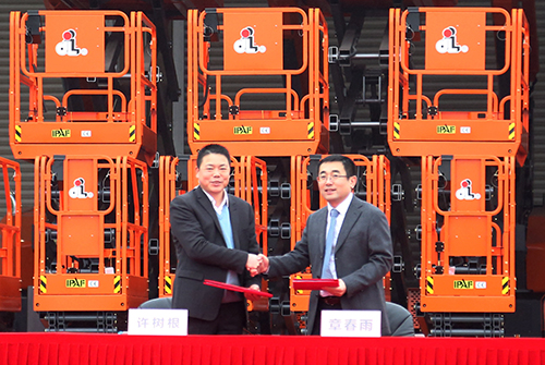 On March 2, Xu Shugen, the President of Zhejiang Dingli Machinery Co., Ltd. (Zhejiang Dingli), has signed the Agreement on Strategic Cooperation with Zhang Chunyu, the General Manager of Shanghai Horizon Equipment & Engineering Co., Ltd. (Shanghai Horizon) at the factory of Zhejiang Dingli, exploring the domestic market of aerial working platform together and initiating a safe and efficient environment for aerial work.