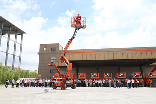 In order to fully understand the brand strength of Dingli, the participants also watched the demonstration of Dingli's new boom series, bridge articulating boom lift(Electric), telescopic bridge platform, scissors lift(RT), multi-function forklift loader and other products.