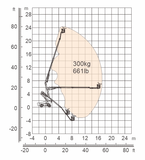 ● Alcance abaixo do nível do solo e grande faixa de alcance horizontal;