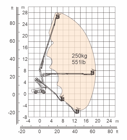 ● Alcance abaixo do nível do solo e grande faixa de alcance horizontal;