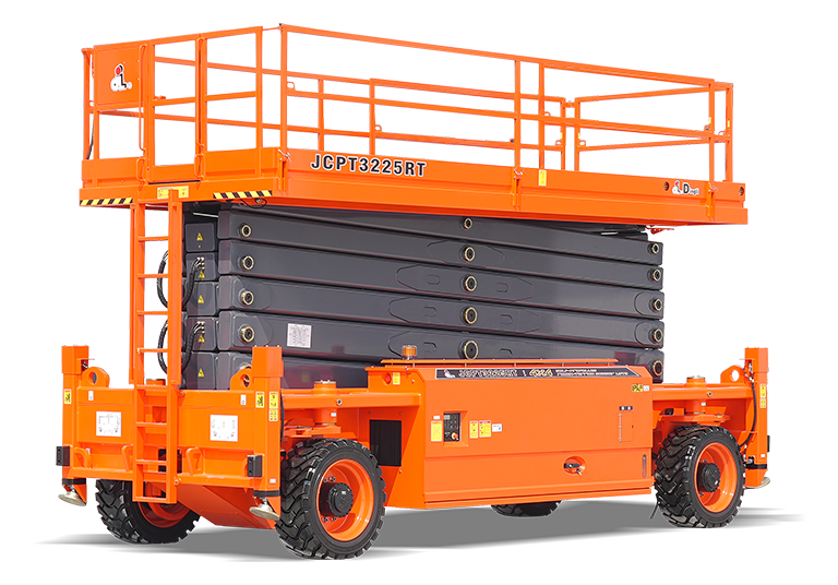 ● Tração e direção nas quatro rodas, excelente desempenho em terrenos acidentados e nivelamento automático;